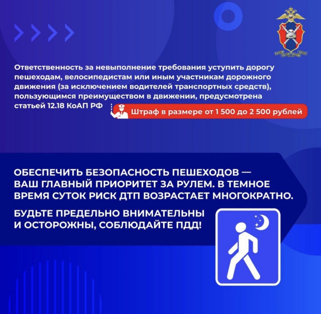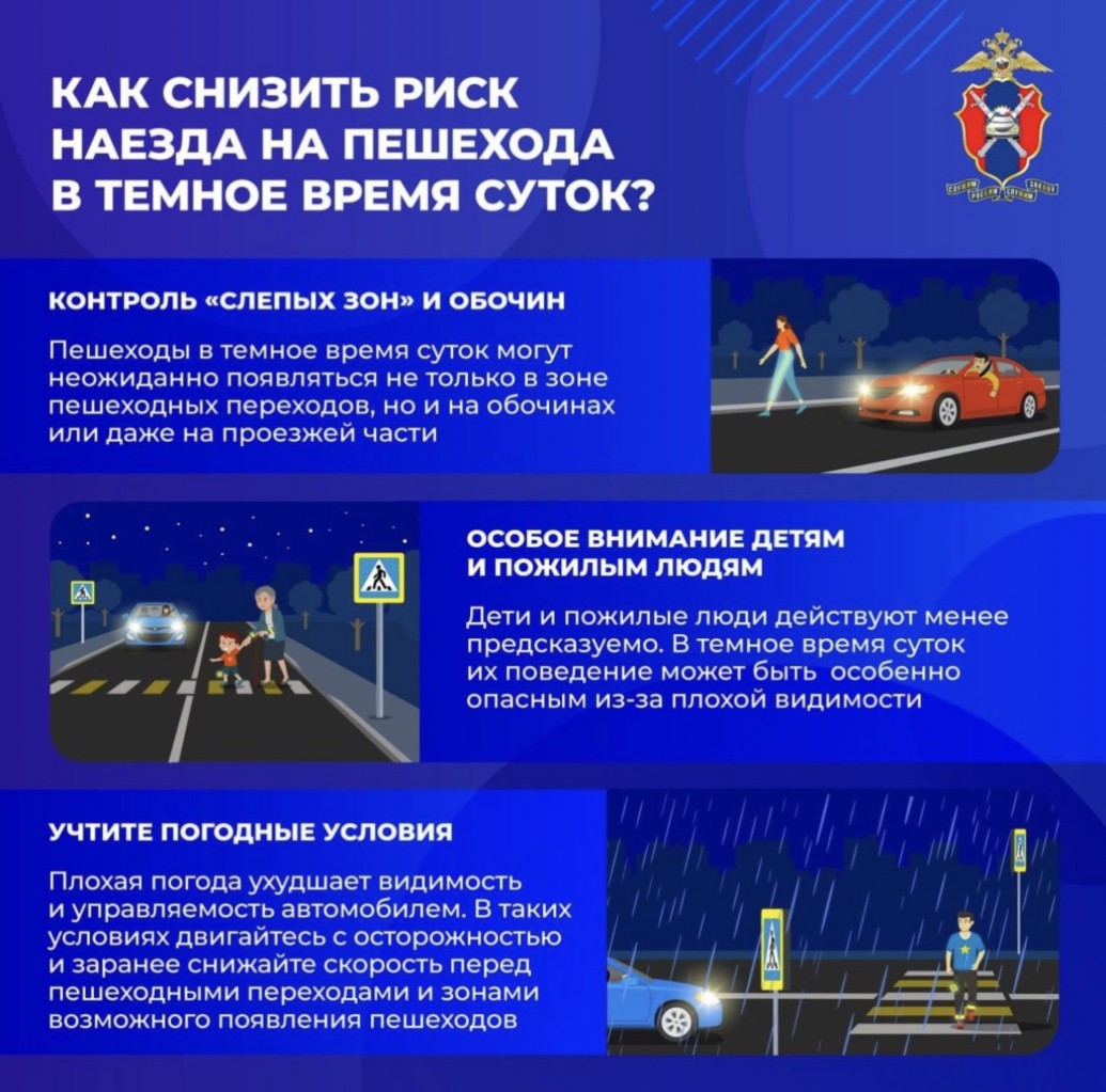 Как следует из информации УМВД России по Амурской области, за 9 месяцев 2025 года произошло 145 дорожно-транспортных происшествий, связанных с наездом на пешеходов, в которых 10 человек погибли и 143 получили ранения. Проведённым анализом установлено, что пешеходы находились на проезжей части дороги без световозвращающих элементов. Отмечается рост ДТП с юными пешеходами, совершёнными в вечернее время с плохой видимостью, кроме этого, у детей на одежде отсутствовали СВЭ.